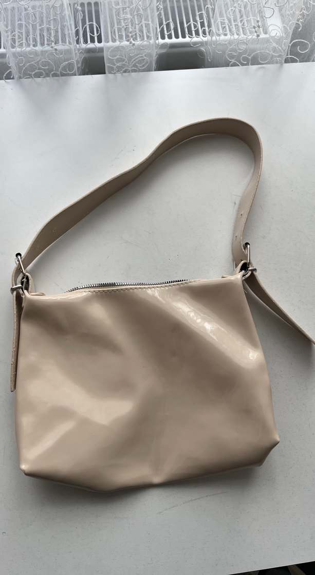 Bej renkli deri kadın çanta, minimalist ve desensiz tasarımıyla günlük sokak stiline uyum sağlar. Rahat ve şık bir görünüm sunar.