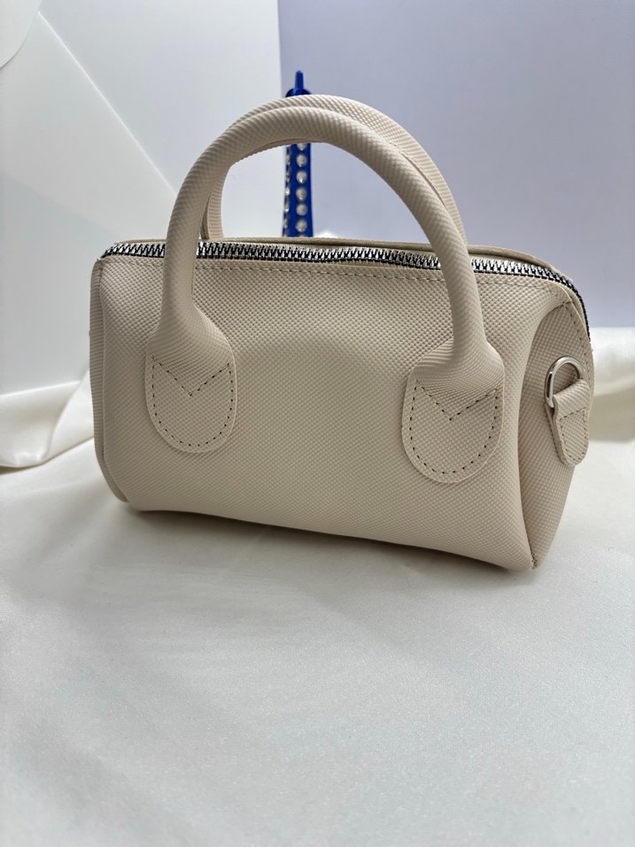 Bej renkte deri, fermuarlı, minimal tasarımlı kadın çantası. Günlük kullanıma uygun, sağlam saplı ve pürüzsüz dokulu.