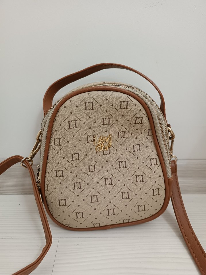 Bej deri kadın çanta, yılan desenli ve fermuarlı kapamalı. Modern klasik tarzda,kahverengi tonlar ve 'LI' logosuna sahip, trend günlük kullanım için uygundur.
