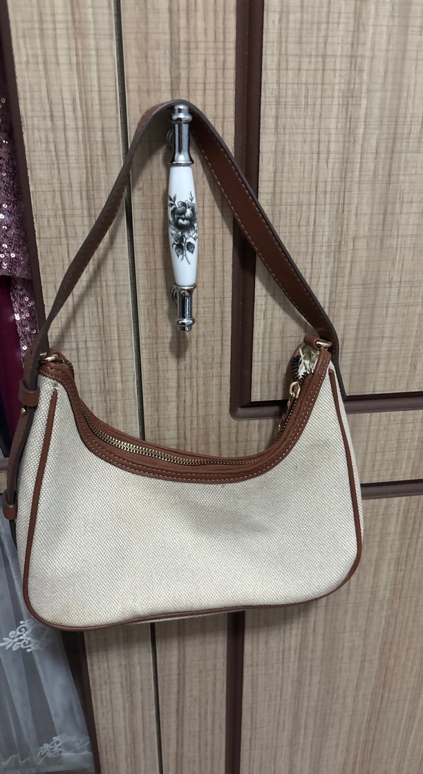 Bej deri kadın çanta, fermuarlı kapama ve baskılı deseniyle minimalist ve bohem tarzı bir araya getirir.