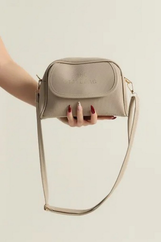 Bej renkte deri kadın çanta, minimalist ve desensiz tasarımıyla dikkat çeker. Pastel tonuyla günlük kullanım için uygundur ve rahat taşınabilir omuz askısına sahiptir.