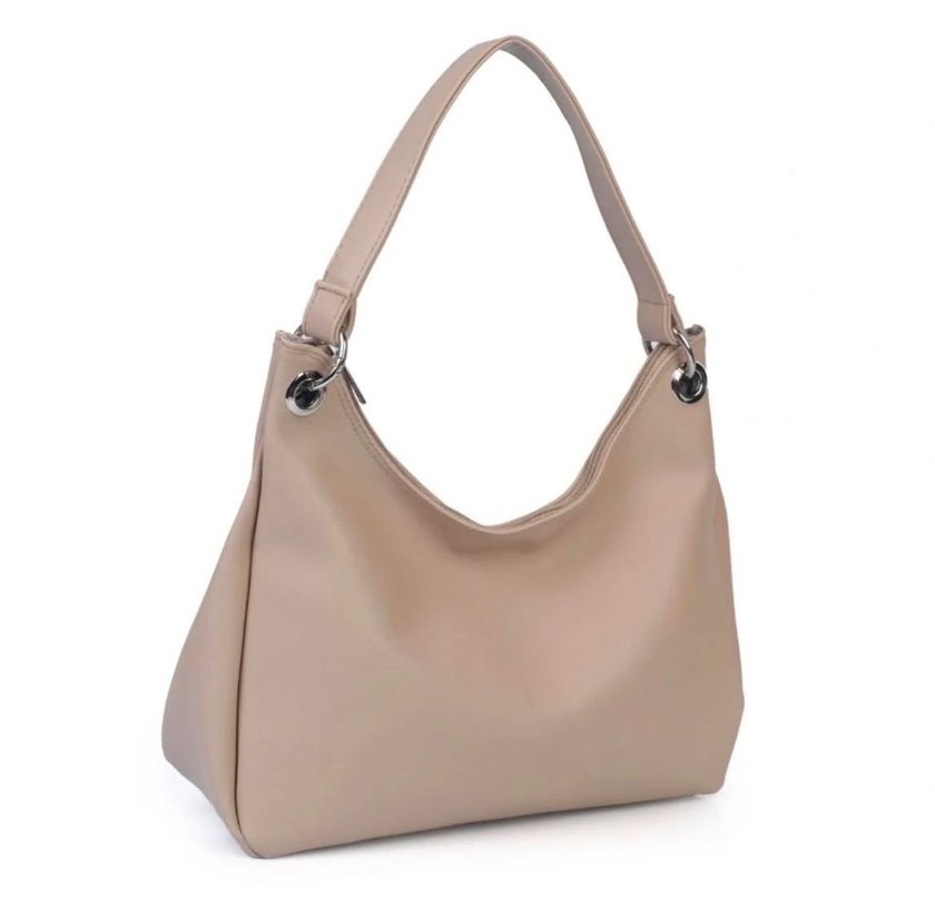 Bej deri kadın çanta, minimalist ve çağdaş tasarıma sahip. Yumuşak pastel tonu ve zahmetsiz şıklığıyla günlük kullanıma uygundur.