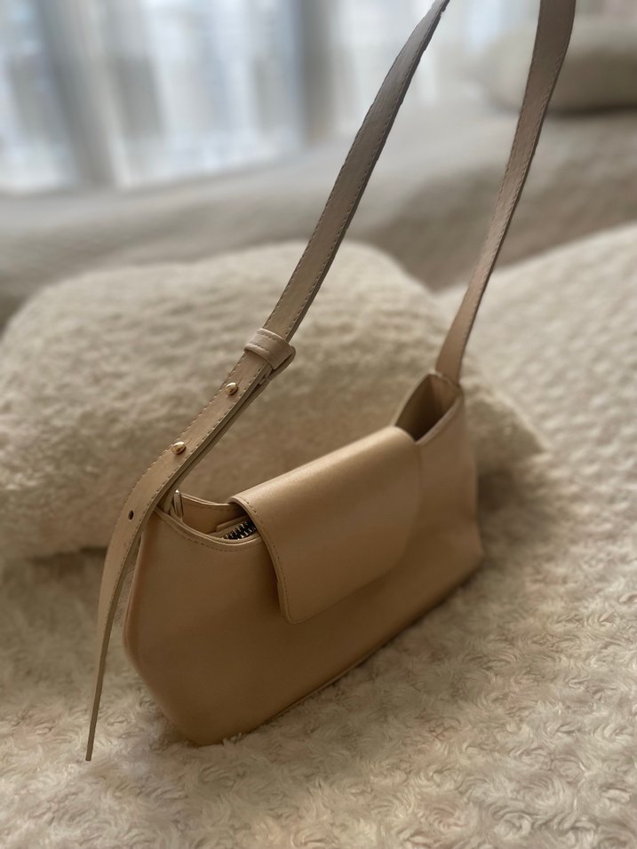 Bej deri kadın çantası, minimalist ve desen içermeyen tasarımıyla dikkat çeker. Ayarlanabilir askısı, çağdaş stil ve günlük kullanım için zahmetsiz şıklık sunar.
