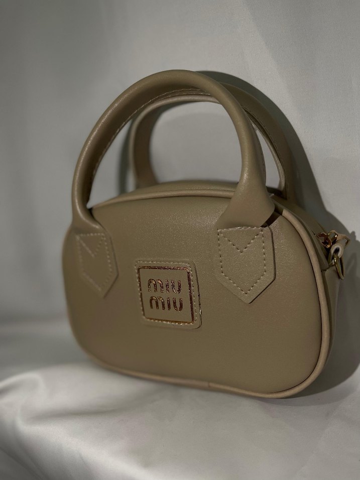 Bej deri Miu Miu kadın çanta, tokalı ve minimalist modern klasik tarzda, gündelik kullanıma uygun. Düz yüzeyi ve sağlam saplarıyla şık ve kullanışlı.