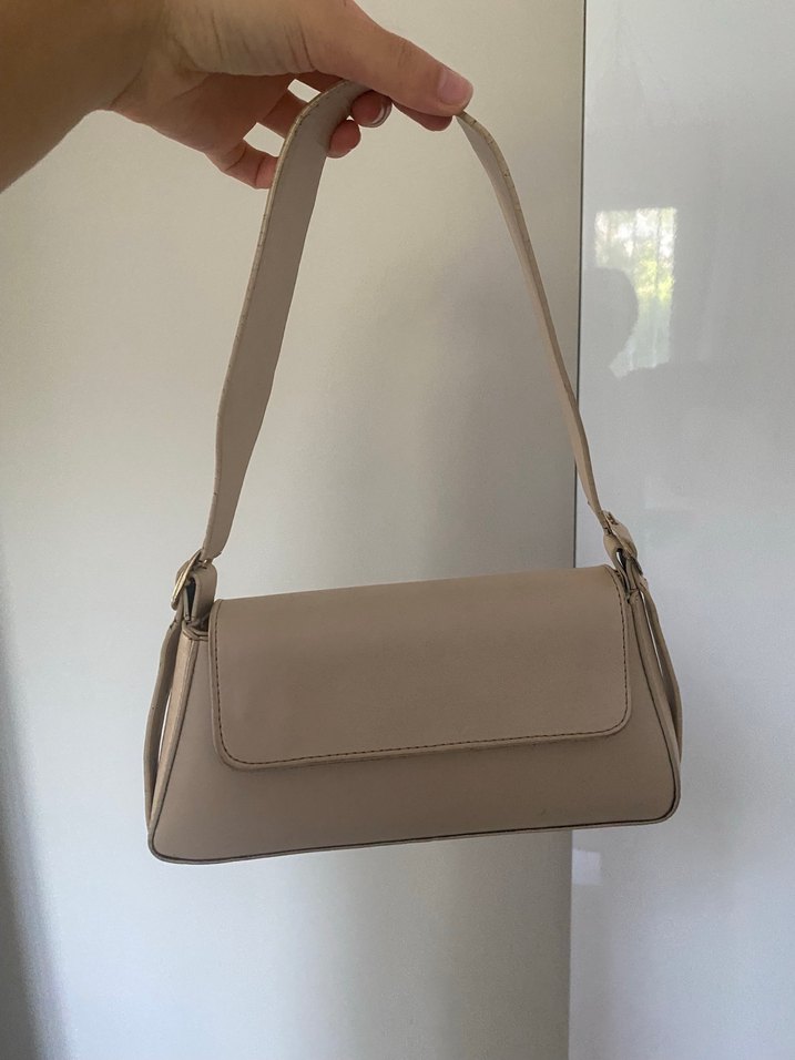 Bej renkte deri kadın çantası, minimalist ve modern klasik tarzda, günlük kullanıma uygun. Düz yüzeyli ve zahmetsiz şıklık sunar.
