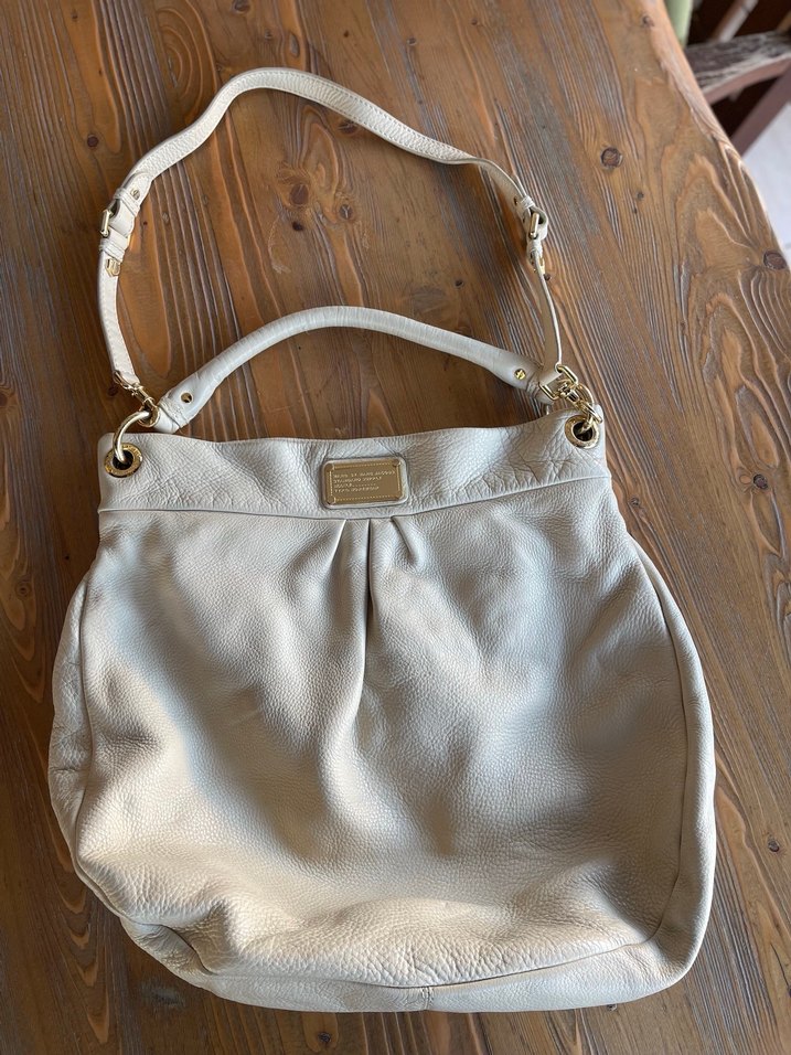 Bej deri kadın çantası, tokalı askısı ve modern klasik tasarımıyla günlük kullanıma uygun, Paris tarzını yansıtır. #marcbymarcjacobs#vintage