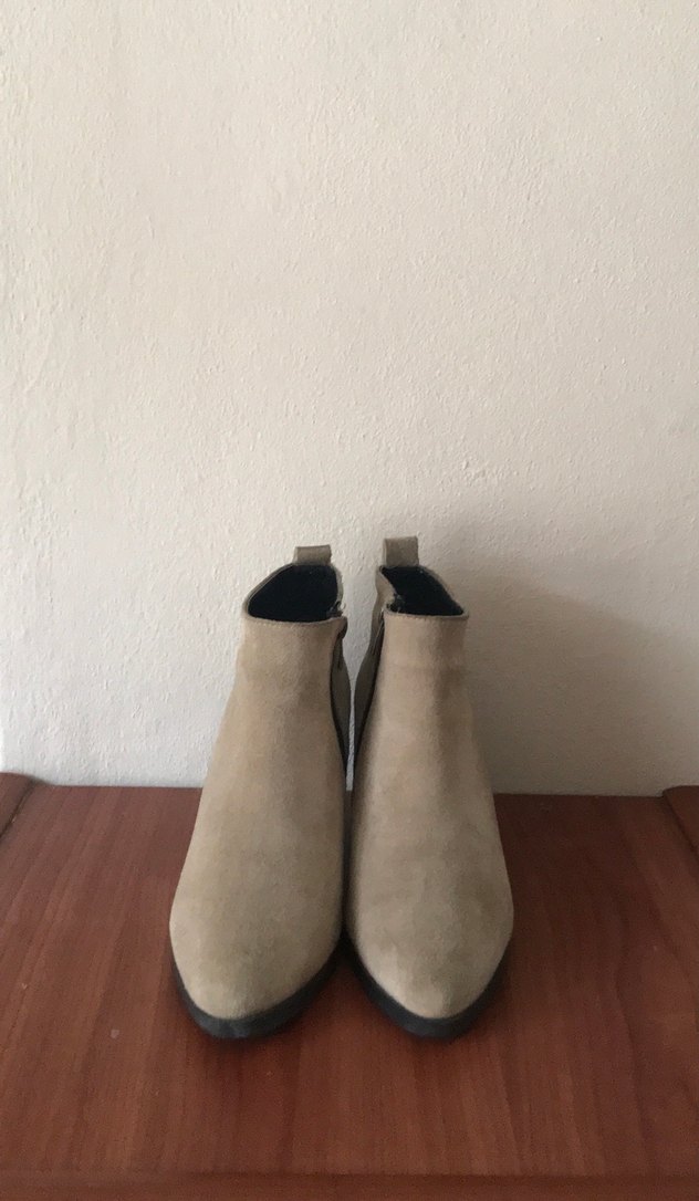 Bej süet kadın botları, blok topuklu ve desensiz tasarıma sahiptir. Günlük kullanıma uygun, rahat ve çağdaş bir görünüm sunar.ürün bir iki kez giyildi ihtiyaç fazlası
