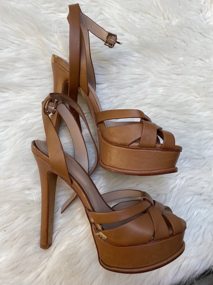 Bej deri platform topuklu ayakkabılar, tokalı bilek kayışıyla minimalist ve çağdaş tarzı romantik akşamlar için buluşturuyor.