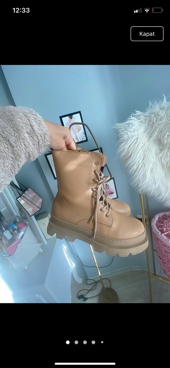 Bej deri platform topuklu botlar, rahat ve zahmetsiz şıklık sunar, günlük kullanım için uygundur. 39 numara iki kere kullandım