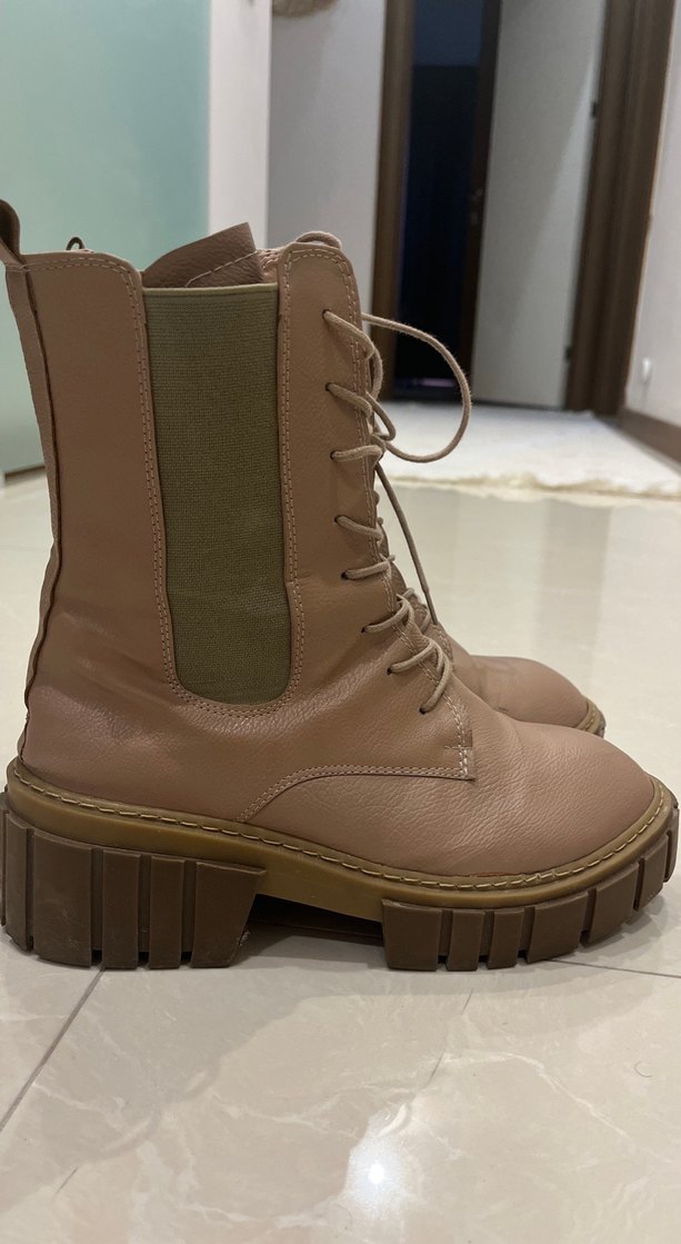Bej renkte, deri malzemeden hotiç mağazasndan alındı kutusuyla gönderilen bir kaç kez giyildi göründüğü gibidir 0 ayarında taş gibi kaymaz tabanlıdır giymesi rahattır