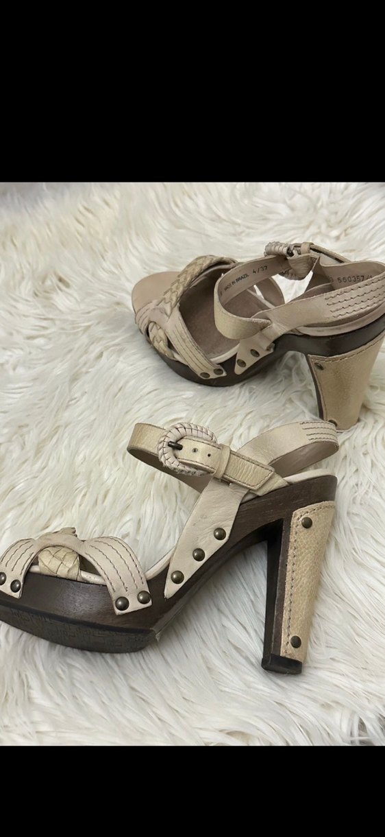 Bej Deri Platform Topuklu Sandalet