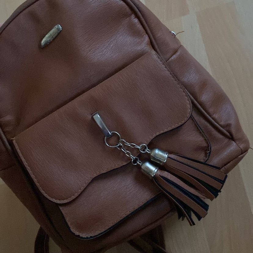Bej Deri Püsküllü Kadın Çanta