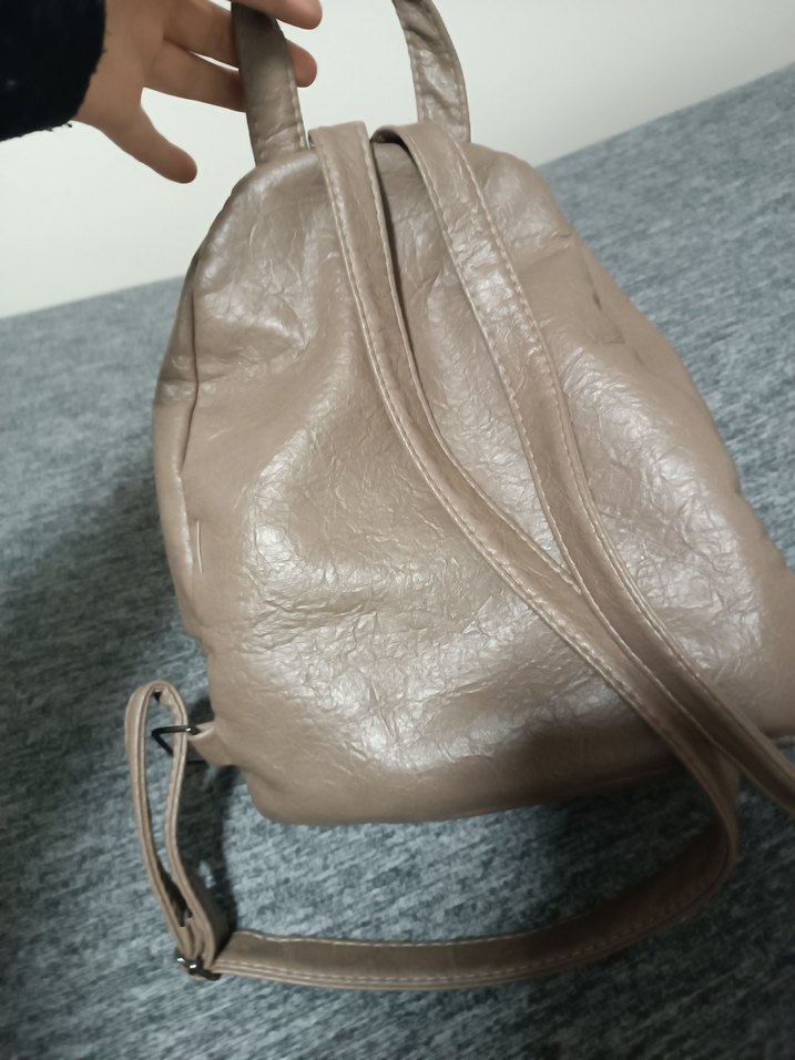 Bej deri sırt çantası, tokalı ve sade tasarıma sahiptir. Bohem tarzıyla günlük kullanıma uygundur.