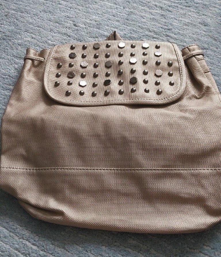 Bej Deri Sırt Çantası, Düğmeli, Nakışlı