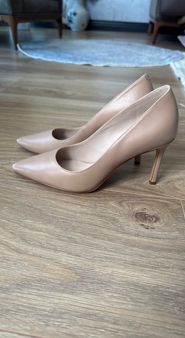 Bej Deri Stiletto Topuklu Kadın Ayakkabı