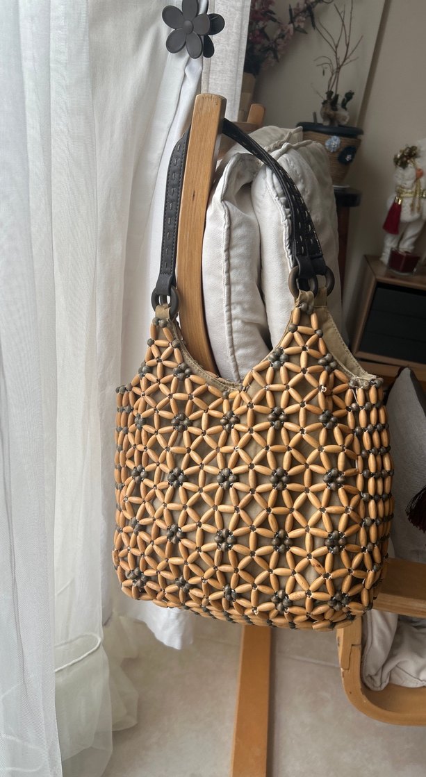 Bej Deri Tokalı Bohem Desenli Kadın Çanta - Görsel 8