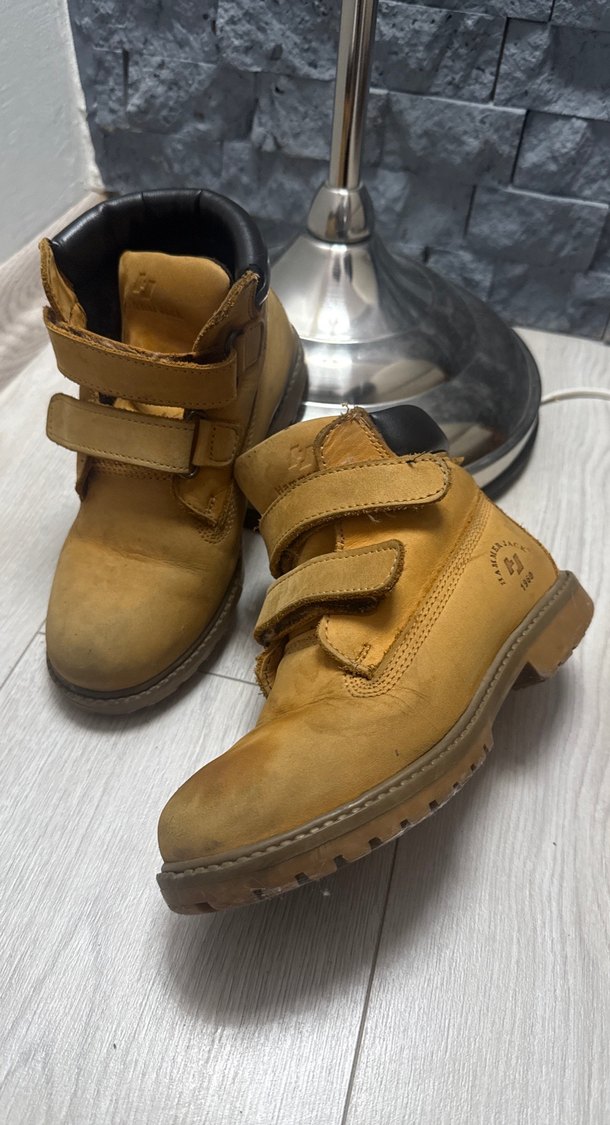 Bej deri, tokalı erkek çocuk botu. Parlak yüzeyli, sokak stiline uygun ve rahat kullanıma sahip.
