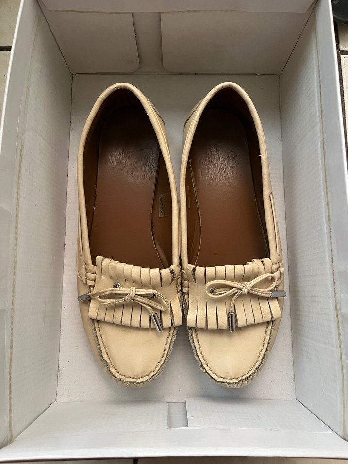 Hesabımda bulunan pierre cardin marka çantayla aynı koleksiyonun ürünüdür ikili alırsanız indirim yaprım. Bej deri kadın ayakkabılar, tokalı detay ve klasik bohem tarzıyla günlük kullanıma uygundur. Pazarlığa açığım 1-2 kez giyildi yalnızca tertemiz