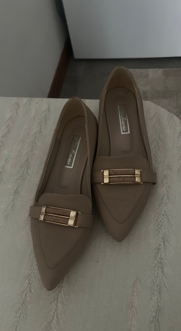 Bej deri, tokalı ve blok topuklu kadın babet, minimalist ve klasik şıklık sunar, günlük kullanıma uygundur.