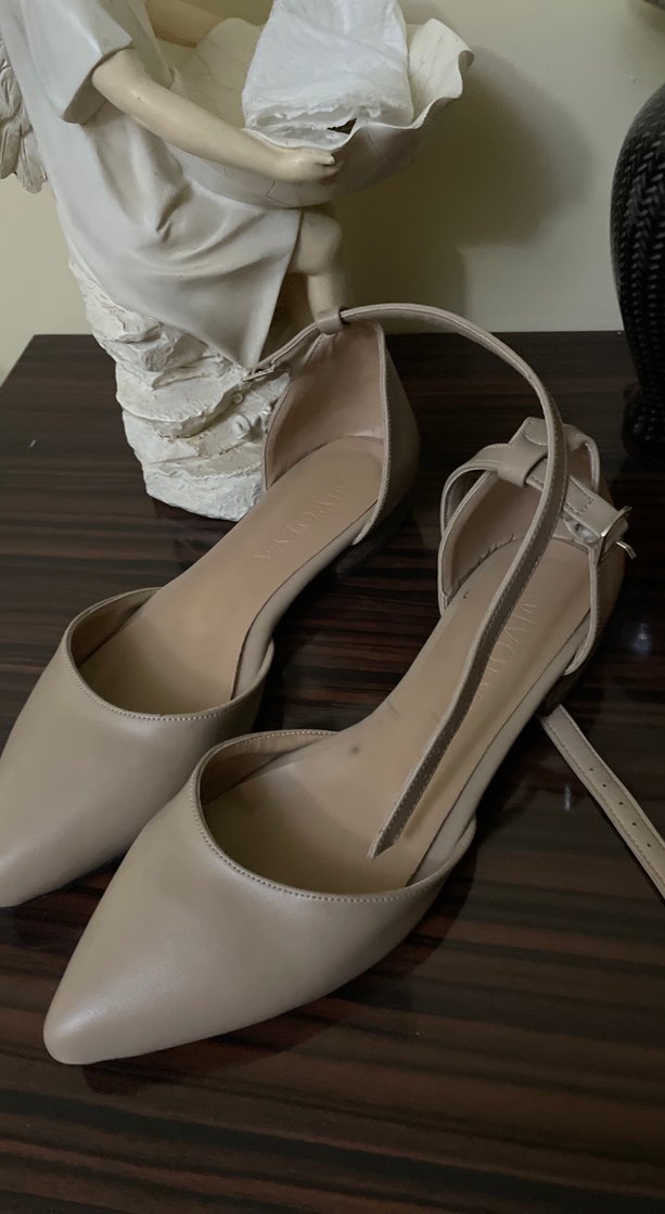 Bej Deri Tokalı Kadın Babet Ayakkabı