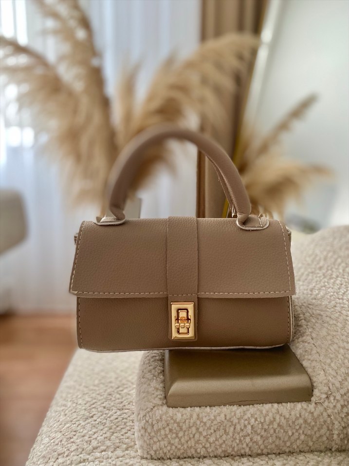 Bej deri tokalı, modern klasik tasarımlı kadın çantası. Hiç kullanılmamıştır sıfırdır askısı içinde mevcuttur