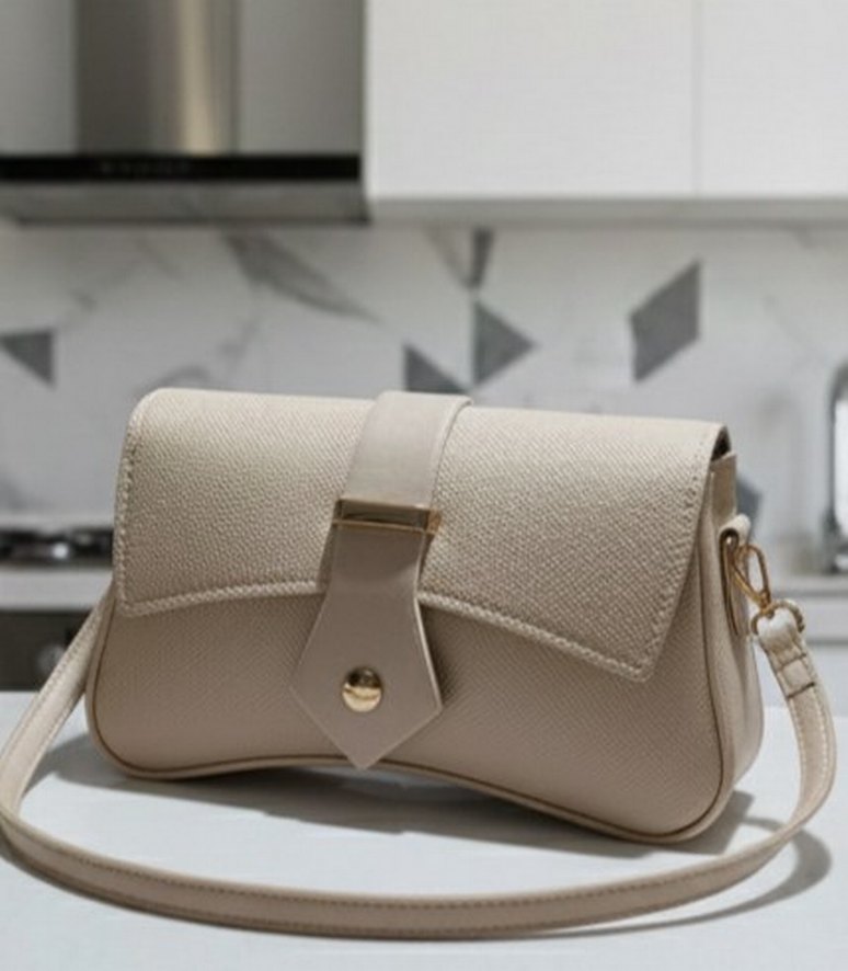 Bej deri tokalı kadın çanta, modern klasik ve minimalist tasarıma sahip. Günlük kullanıma uygun.