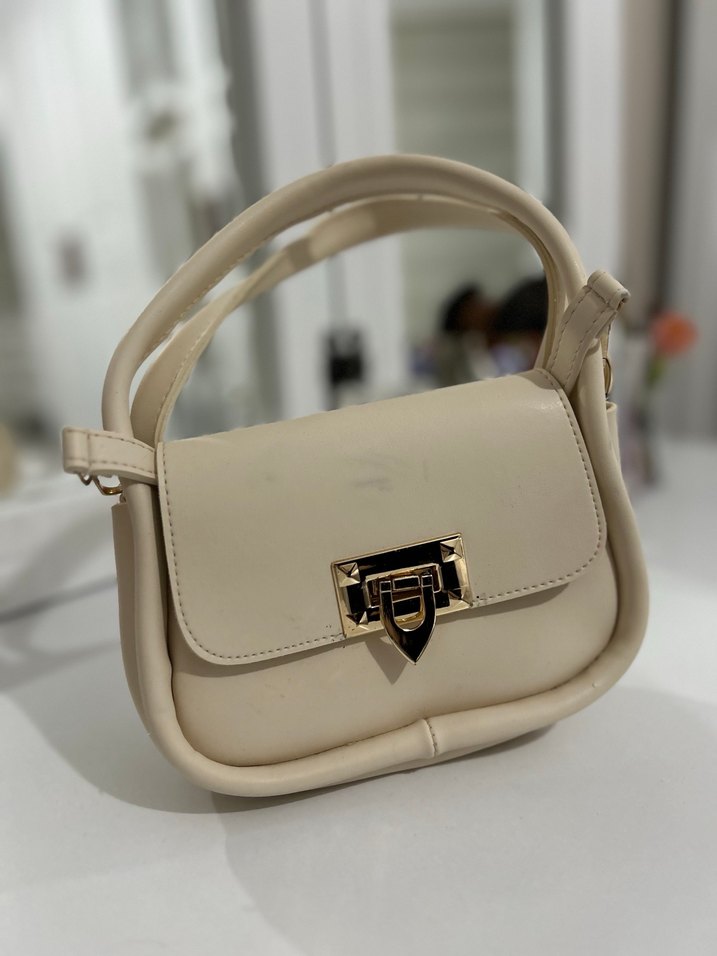 Bej Deri Tokalı Kadın Çanta