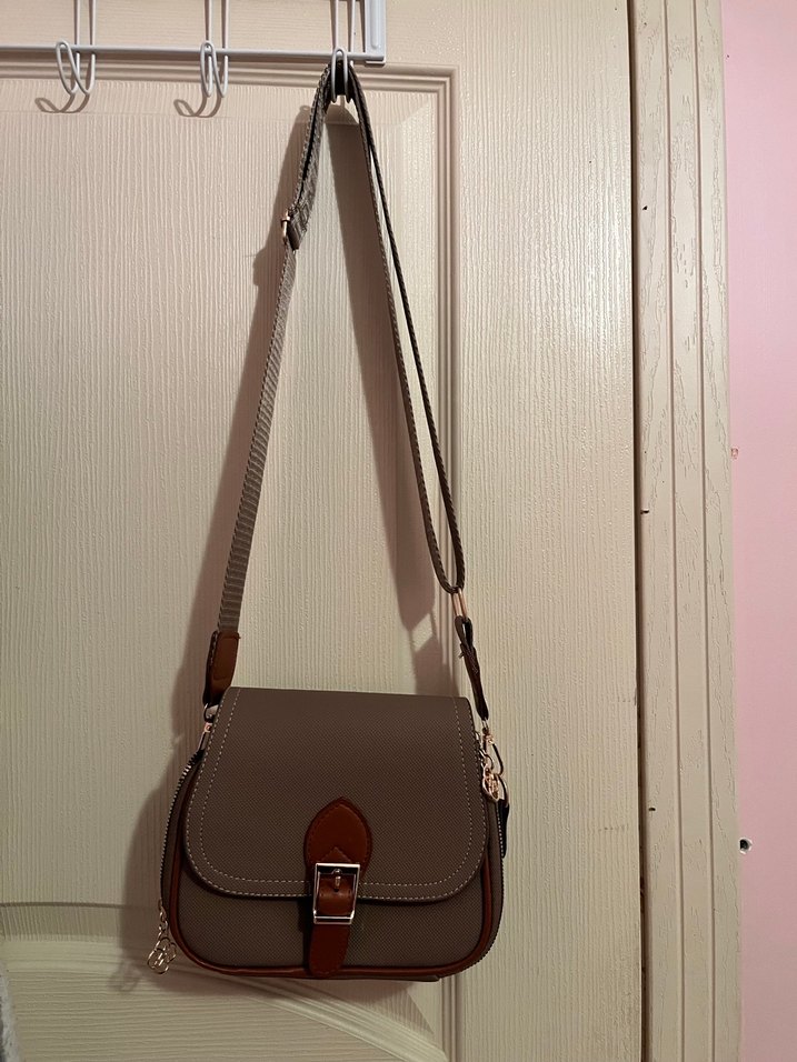 Üründe deforme falan yoktur tokalı yer gölgesi düşmüştür Bej deri, tokalı kapak ve ayarlanabilir omuz askısına sahip kadın çantası. Klasik ve desensiz tasarım, günlük kullanım için uygun.
