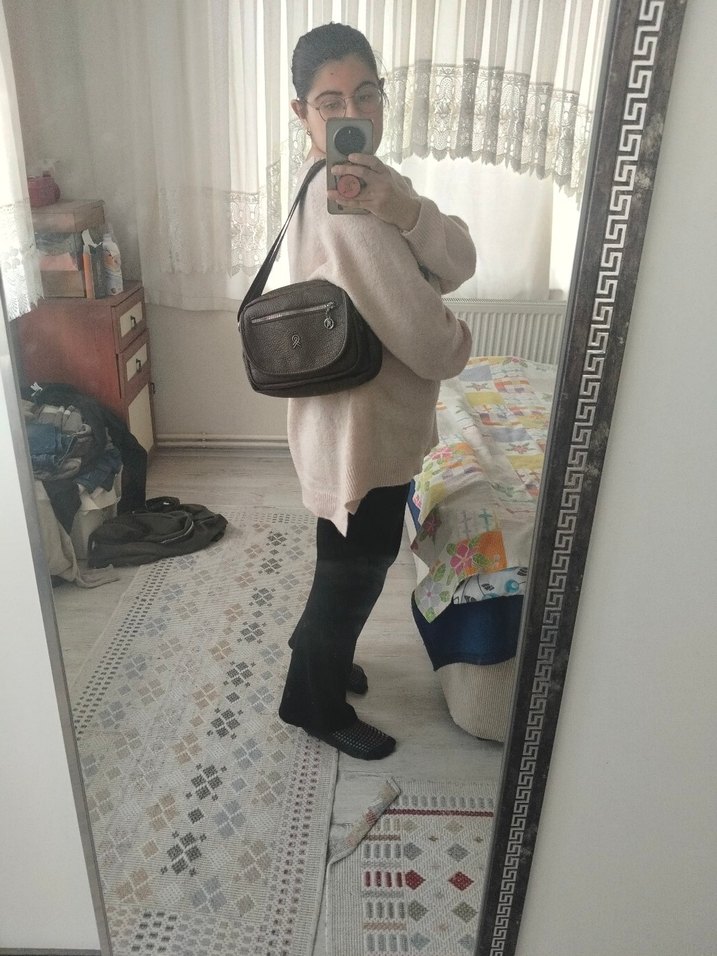 Bej Deri Tokalı Kadın Çapraz Çanta
