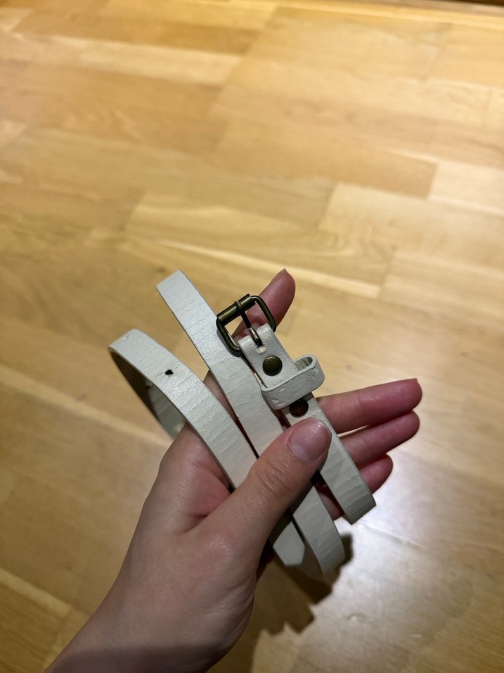98 cm. Bej renkli deri malzemeden yapılmış, tokalı kadın kemeri, minimalist ve zamansız bir tarza sahiptir.