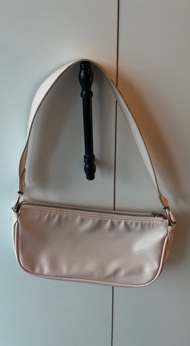 Bej renkte, tokalı deri kadın omuz çantası. Düz ve desensiz tasarımıyla günlük sokak stiline uygundur.