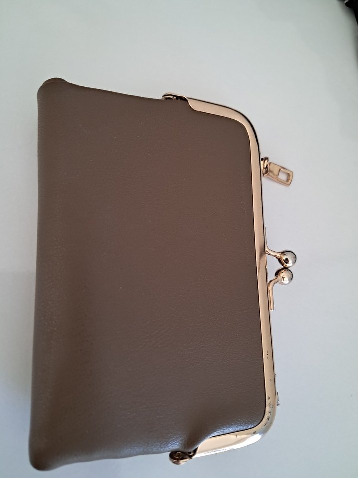 Bej deri tokalı kadın portföy cüzdan, düz ve desen içermeyen yüzeye sahip. Günlük kullanım için uygun, modern klasik ve vintage esintili tasarım.