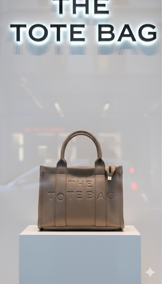 Kabartmalı desenli ve tokalı bej deri tote çanta, günlük şehir stiline uygun. Çağdaş ve şık tasarım.