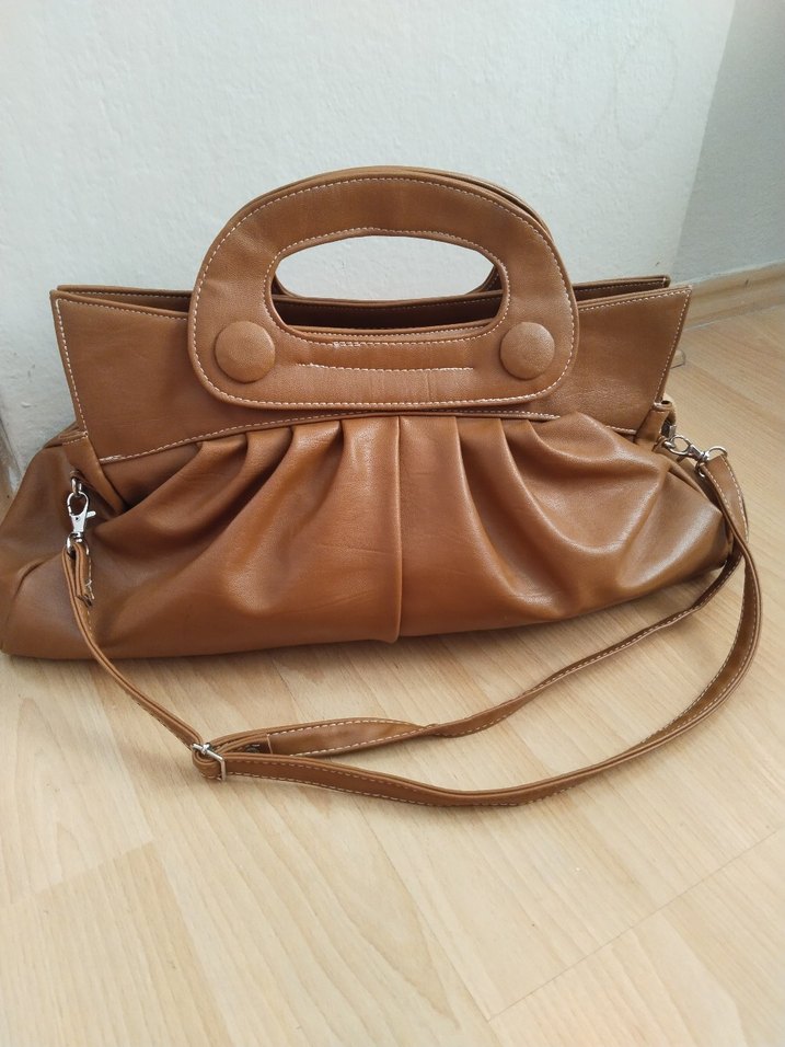 Parlak bej deri, vintage tarzda, tokalı detaylara sahip, günlük kullanıma uygun çağdaş kadın çantası.