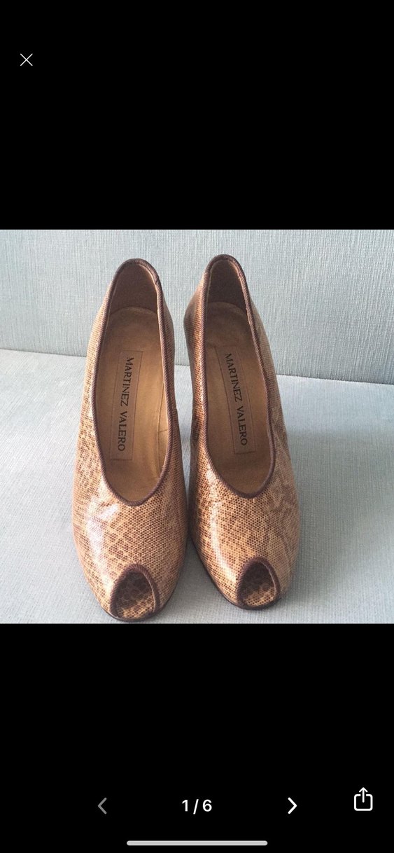Bej deri yılan desenli kadın akşam ayakkabısı, parlak dokusu ve dolgu topuklu yapısıyla klasik şıklık sunar. Martinez Valero imzalı, ofis için ideal.
