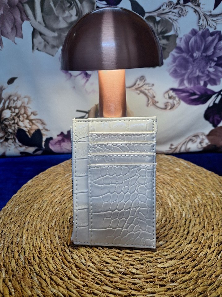 Bej renkte yılan desenli deri kadın cüzdanı, fermuarlı kapama ve çağdaş sade tasarıma sahiptir. Günlük kullanıma uygundur.