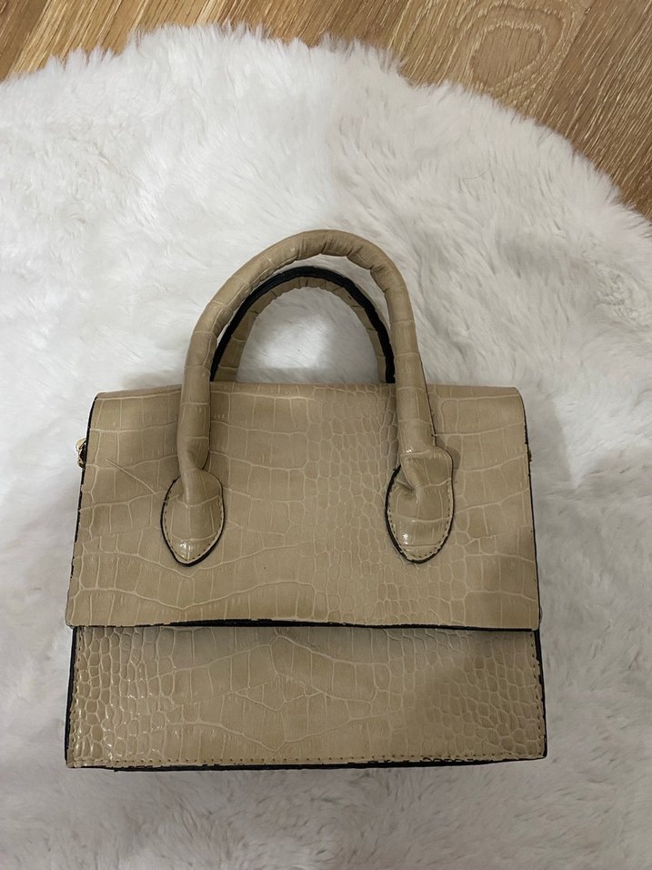 Bej Deri Yılan Desenli Kadın Çanta
