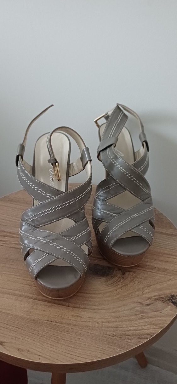 Bej deri yılan desenli topuklu ayakkabılar, tokalı bantlarıyla Paris tarzını günlük şıklıkla birleştirir.Topuk boyu 12 cm dir.