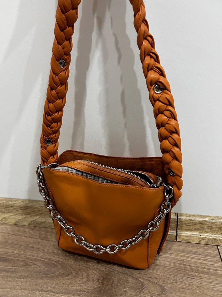 Bej Deri Zincir Detaylı Kadın Çanta