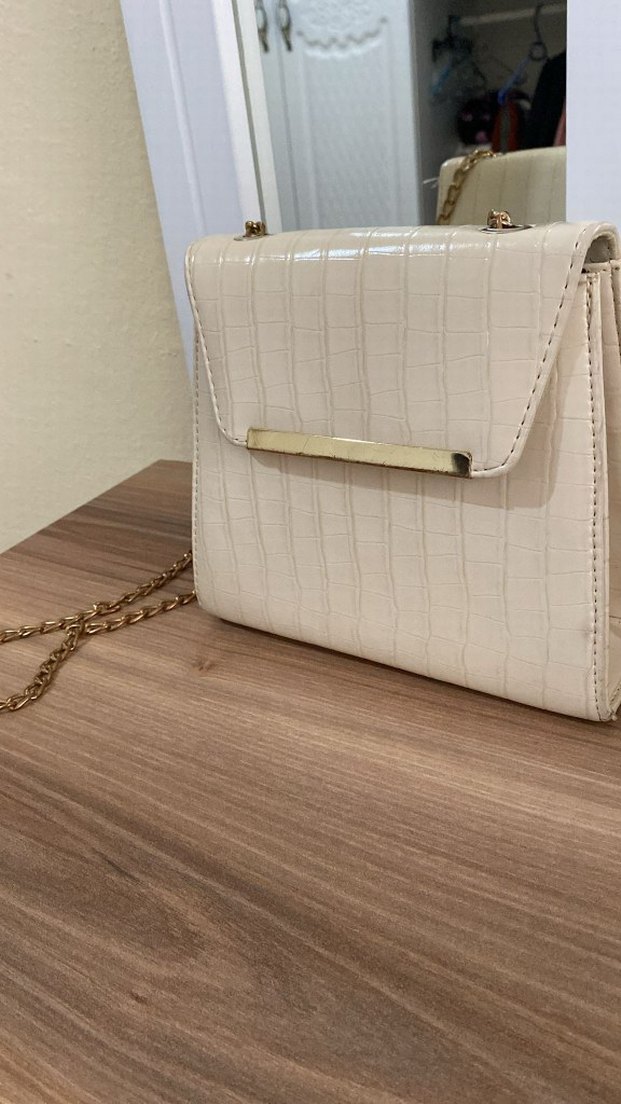 Bej Deri Zincir Detaylı Kadın Çanta