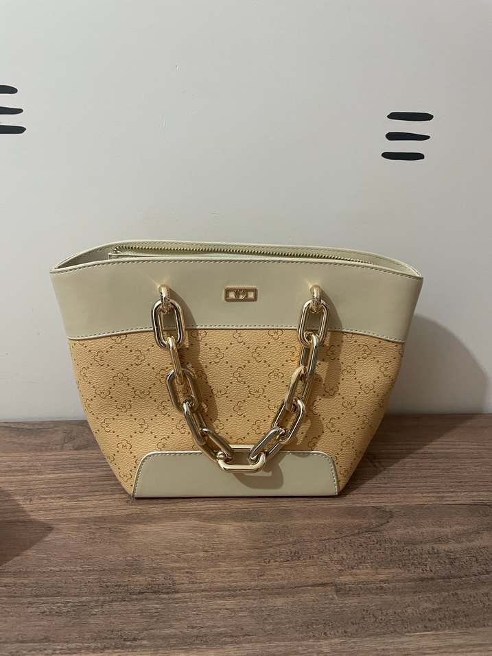 Bej Deri Zincir Detaylı Kadın Çanta - Görsel 1