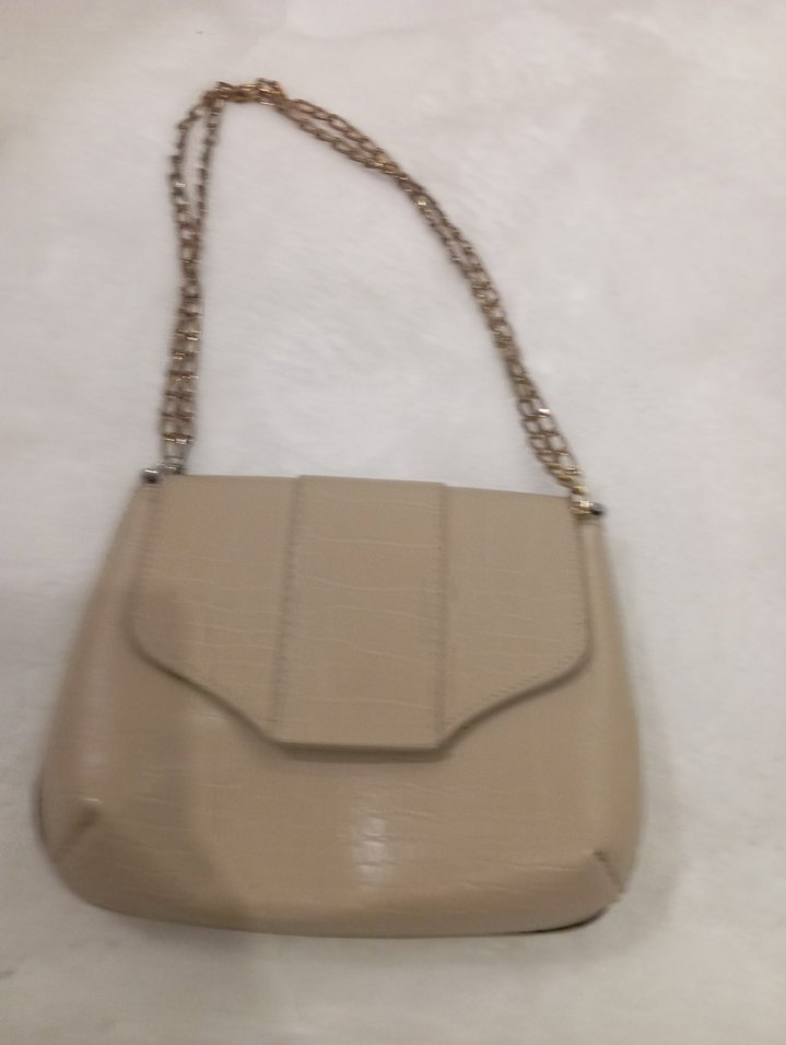 Bej Deri Zincir Detaylı Modern Klasik Çanta