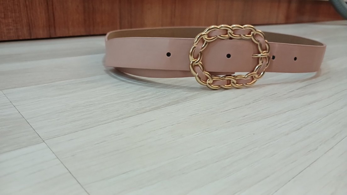 Bej deri kayış ve altın renk zincir tokasıyla, çağdaş Paris tarzını yansıtan şık ve trend bir kadın kemeri. Pastel tonlarda zarif görünüm sağlar.