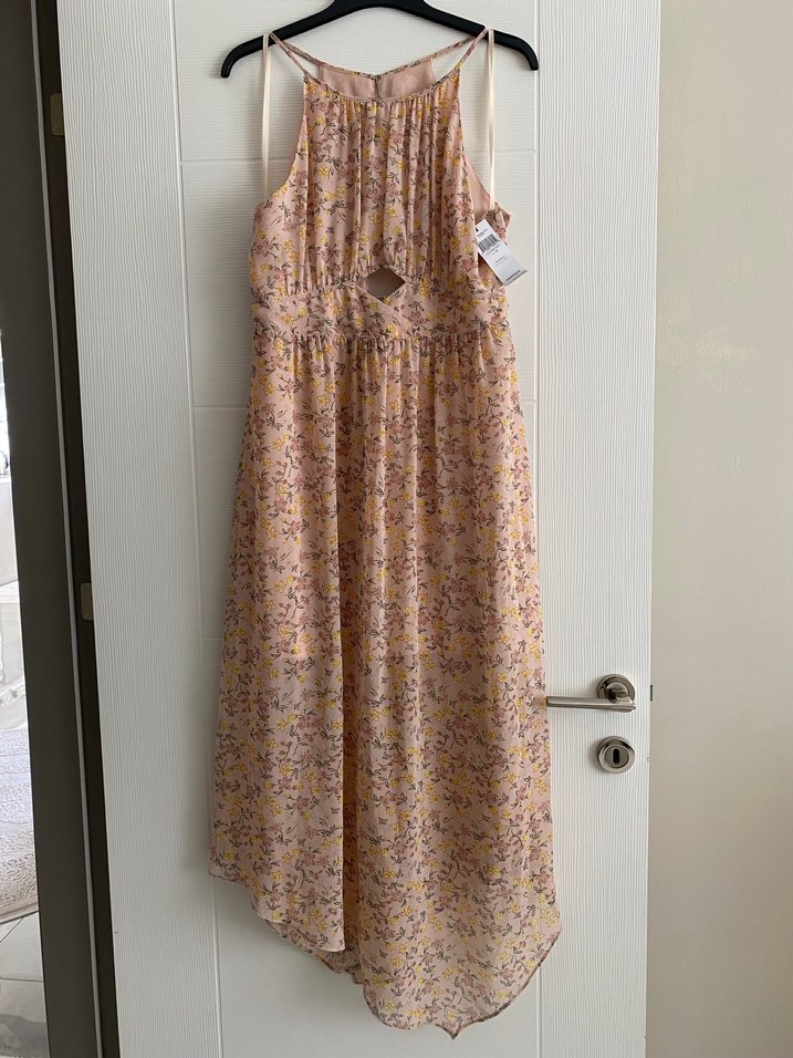 Bej renkte, askılı ve bol kesimli bohem uzun elbise. Drapeli ve batik desenlidir, romantik akşamlar için uygundur. Yurt dışından hediye geldi asıl fiyatı 118$