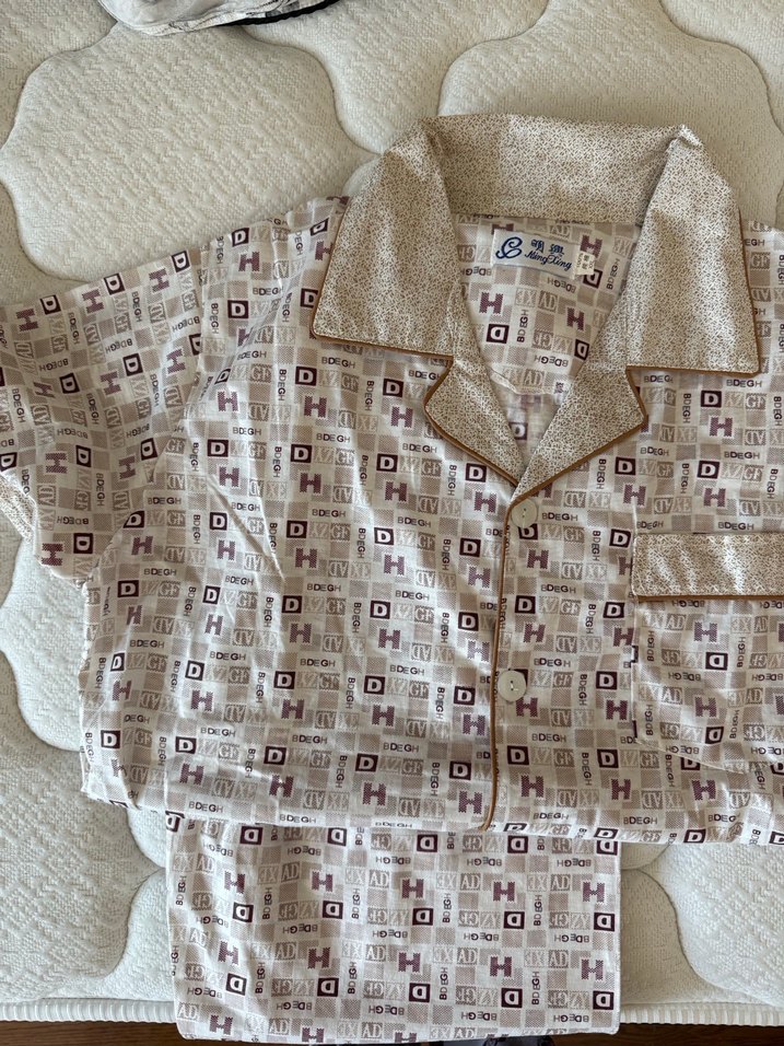 Bej renkli, kısa kollu, bol kesim ve midi boy erkek pijama takımı. Rahat ve klasik tarzda, gri tonlarıyla dikkat çekiyor. Yumuşak dokulu M bedene rahat olur. Yurtdışı ithal ürün.