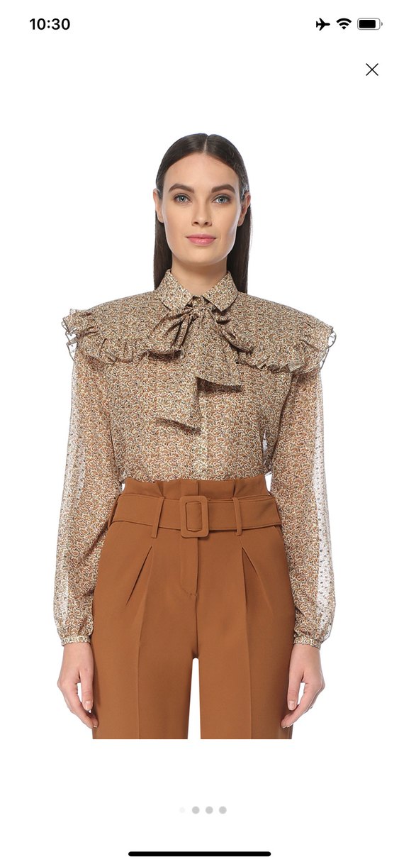 Bej renkte, yakalı ve fırfırlı detaylı uzun kollu bluz. Desenli ve regular kesim, ofis için bohem tarzda uygun. #metwork# #kazak# #zara# #mango# #twist# #h&m# #stradivarius# #bershka# #zara# #ipekyol# #h&m# #networkgömlek# #network# #zara ###mango# #berska# a#satıldı#