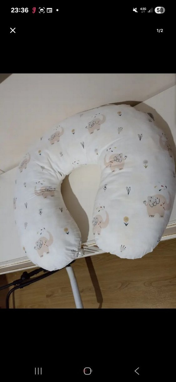 Pastel desenli bej hamile ve emzirme yastığı, anneler için konforlu destek sağlar.