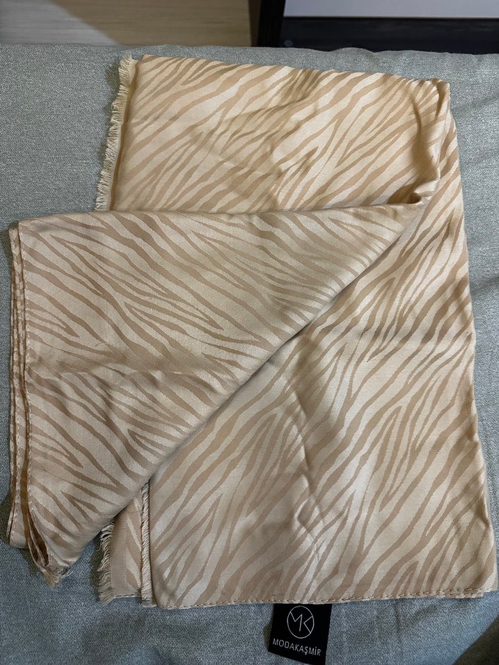 Bej renkli, gri desenli ve püsküllü kenarlarıyla yumuşak dokulu kadın şal. Rahat ve bohem tarz için uygun. Küçük çekilmeler var fotoğrafta belirtildi