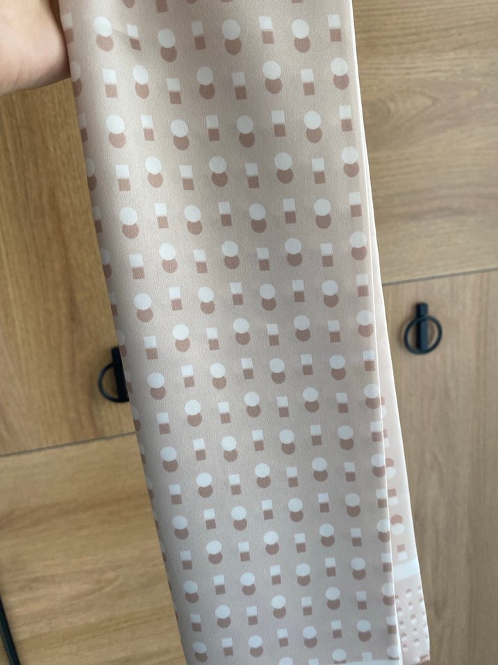 Hafif bej renginde, modern tarzda geometrik desenli eşarp hiç kullanılmadı