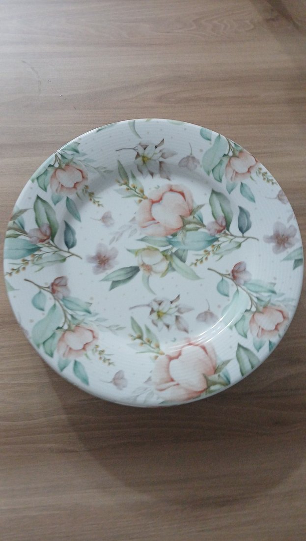 Bej renkli, pastel çiçek desenli ve kapaklı saklama kabı, yiyeceklerinizi güvenle muhafaza eder.